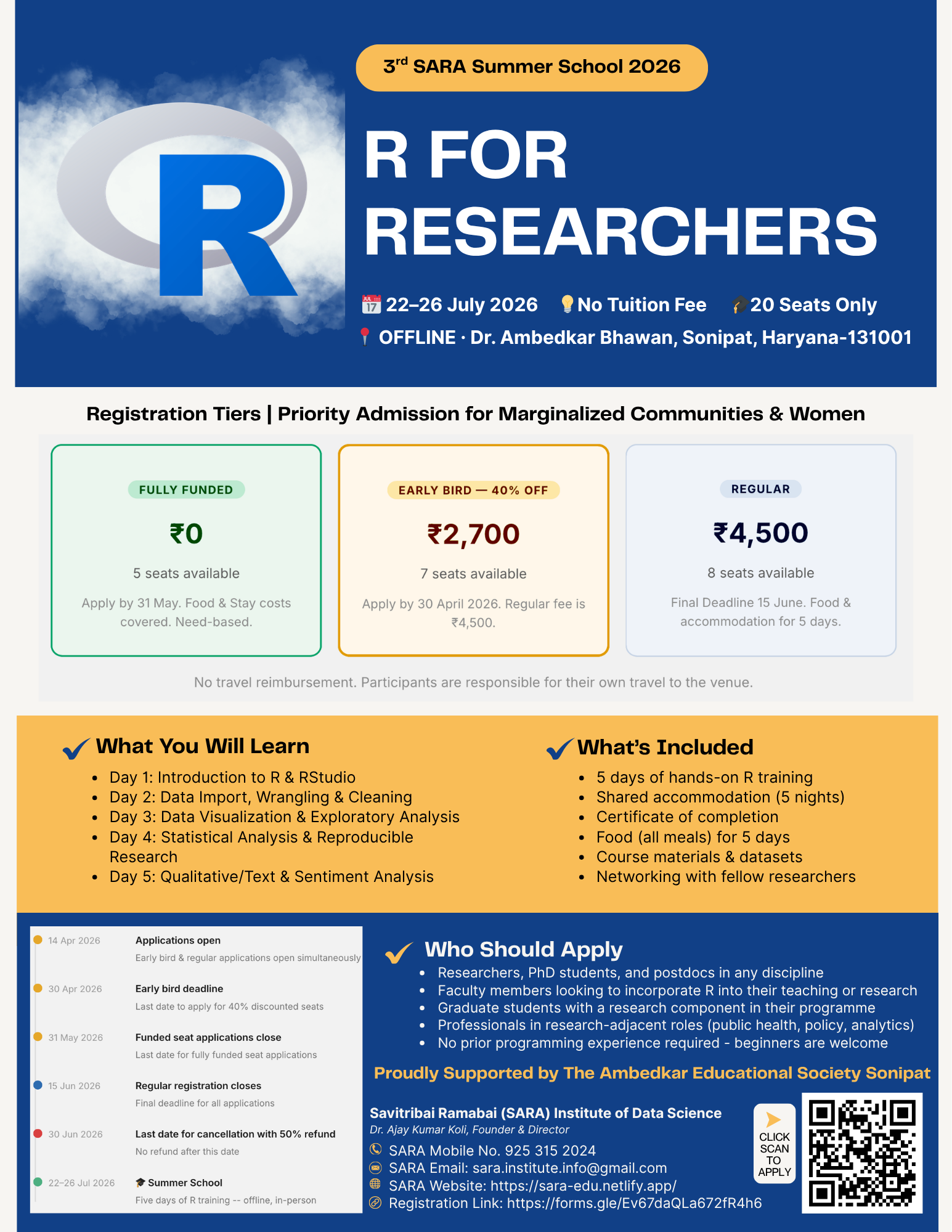 This is a non-profit event with no tuition fee. Participants only contribute toward food and accommodation. A limited number of fully funded seats are available for deserving applicants.